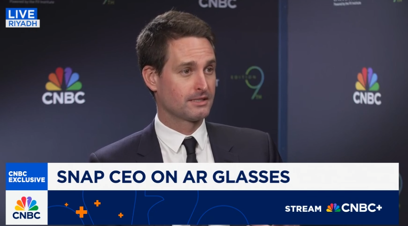 近日,Snap CEO Evan Spiegel出席了在利雅得举行的 2025 年未来投资倡议大会(FII),期间接受CNBC的采访并谈到了企业在AR眼镜领域的最新进展。